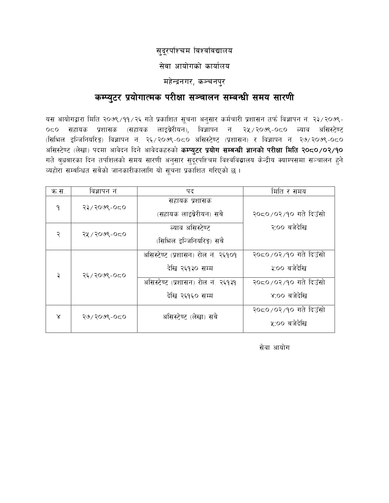 कम्प्युटर प्रयोगात्मक परीक्षा सञ्चालन सम्बन्धी समय सारणी